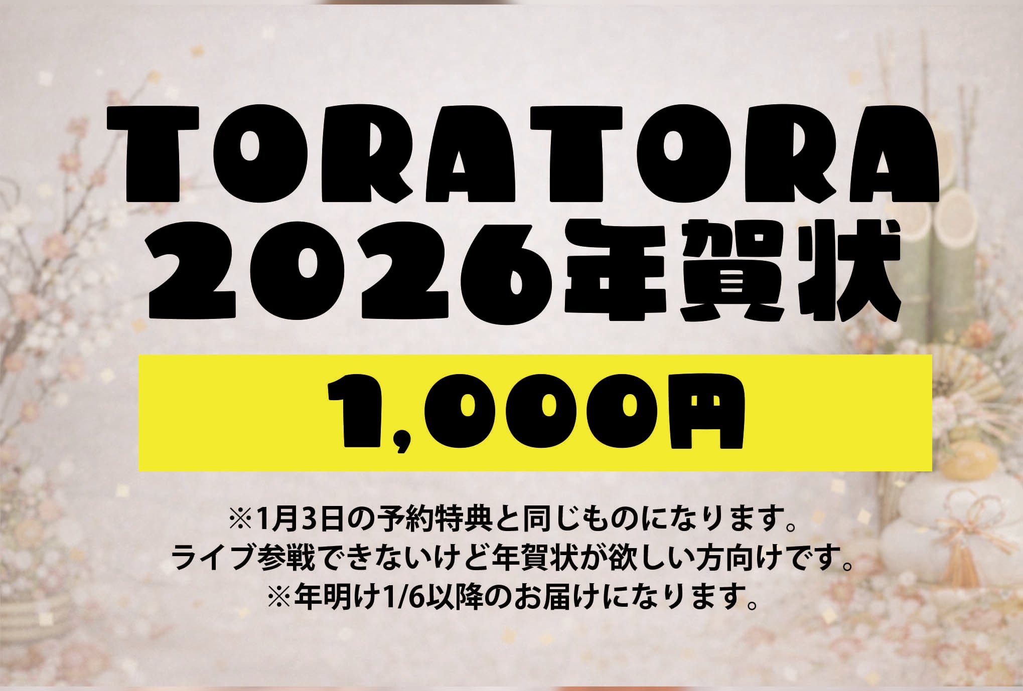 1月3日に行われる「愛野可奈ちゃんお正月主催 新春UMAUMA」にてTORATORAで本予約、またはDD予約いただいた方にお渡しするものと同じものです。当日のライブ参戦は難しいけど年賀状は欲しい!という方のためにご用意しました。